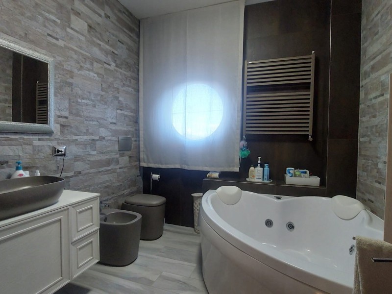 Particolare cura è stata riservata alla ristrutturazione degli interni, caratterizzati da finiture di pregio come marmo nella zona giorno, parquet nelle camere e porte in legno massello. Inoltre l'immobile vanta impianto di allarme, di depurazione dell'acqua ed infissi di ultima generazione con zanzariere.
