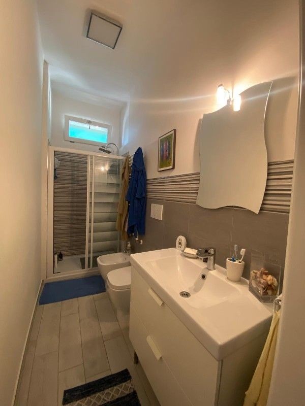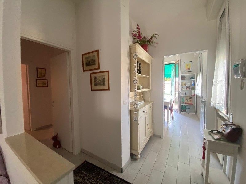 L’ingresso si apre su un disimpegno che conduce a tutti gli ambienti della casa: un comodo ripostiglio adibito a lavanderia con lavatrice, un soggiorno arredato con cura, una cucina abitabile completa di elettrodomestici e stoviglie, con accesso diretto al balcone. Il bagno, finestrato, è moderno e ben rifinito, mentre le due camere matrimoniali offrono ampi spazi e arredi di qualità.